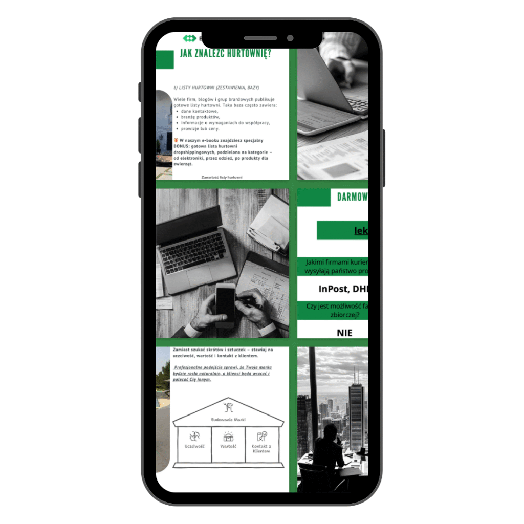 Praktyczny e-book, kolebka wiedzy prowadząca krok po kroku: od wyboru produktu, przez dostawców i platformy, po marketing i automatyzację.